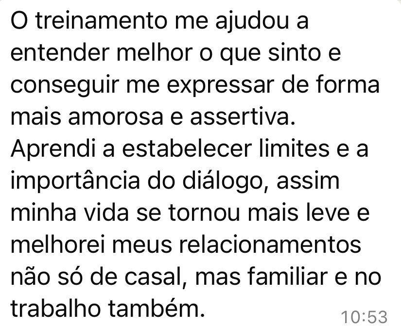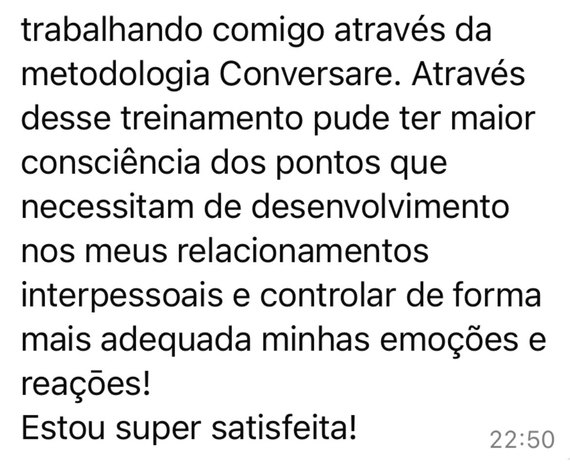 Foi dessa visão que nasceu o Treinamento Conversare. Após aplicar minha metodologia de comunicação estratégica em dezenas de pacientes, hoje levo essa transformação para mulheres que desejam construir relacionamentos mais saudáveis, conectados e livres de conflitos desgastantes.